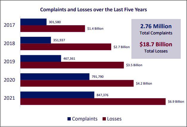 The U.S. Federal Bureau of Investigation (FBI) is also sounding the alarm about the precipitous growth that it is seeing in cybercrime, which is responsible for a major chunk of the dark web economy. In its IC3 2021 Internet Crime Report breaks down the bureau reported that its Internet Crime Complaint Center (IC3) received a record number of complaints from U.S. businesses in 2021 – 847,376 reported complaints, a 7% increase from 2020. Those complaints also carried a staggering amount of losses for U.S. businesses. The total amount of loss reported hit a new record high in 2021 of $6.9 billion. That’s a whopping 48% increase over 2020.